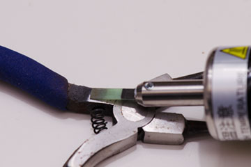 The tool used for polishing was a pair of round pliers that had become rusty and were stored in the back of a toolbox. When checking the condition of the rust, it was first noticed that the rust was concentrated near the handle. It was also discovered that small pieces of rust had appeared all over the area around the moving parts, which at first glance looked clean. If the tool continued to be used as is, there was a risk of problems such as rust spilling out during work, so it was decided to polish it with a polishing stone.
